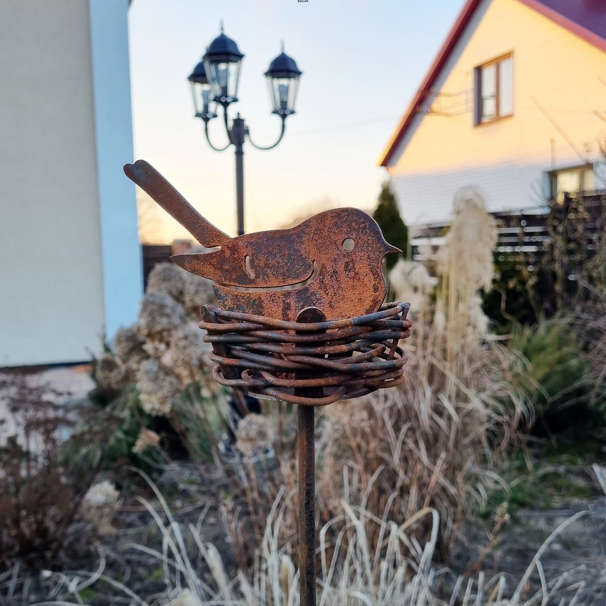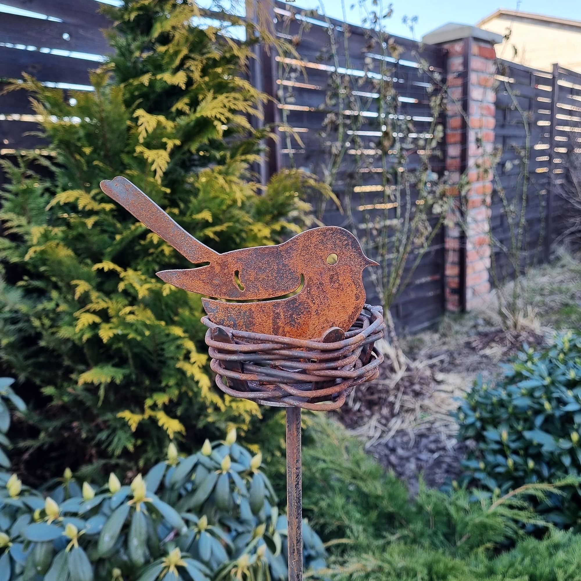 Gniazdo z ptaszkiem malowane rdzą