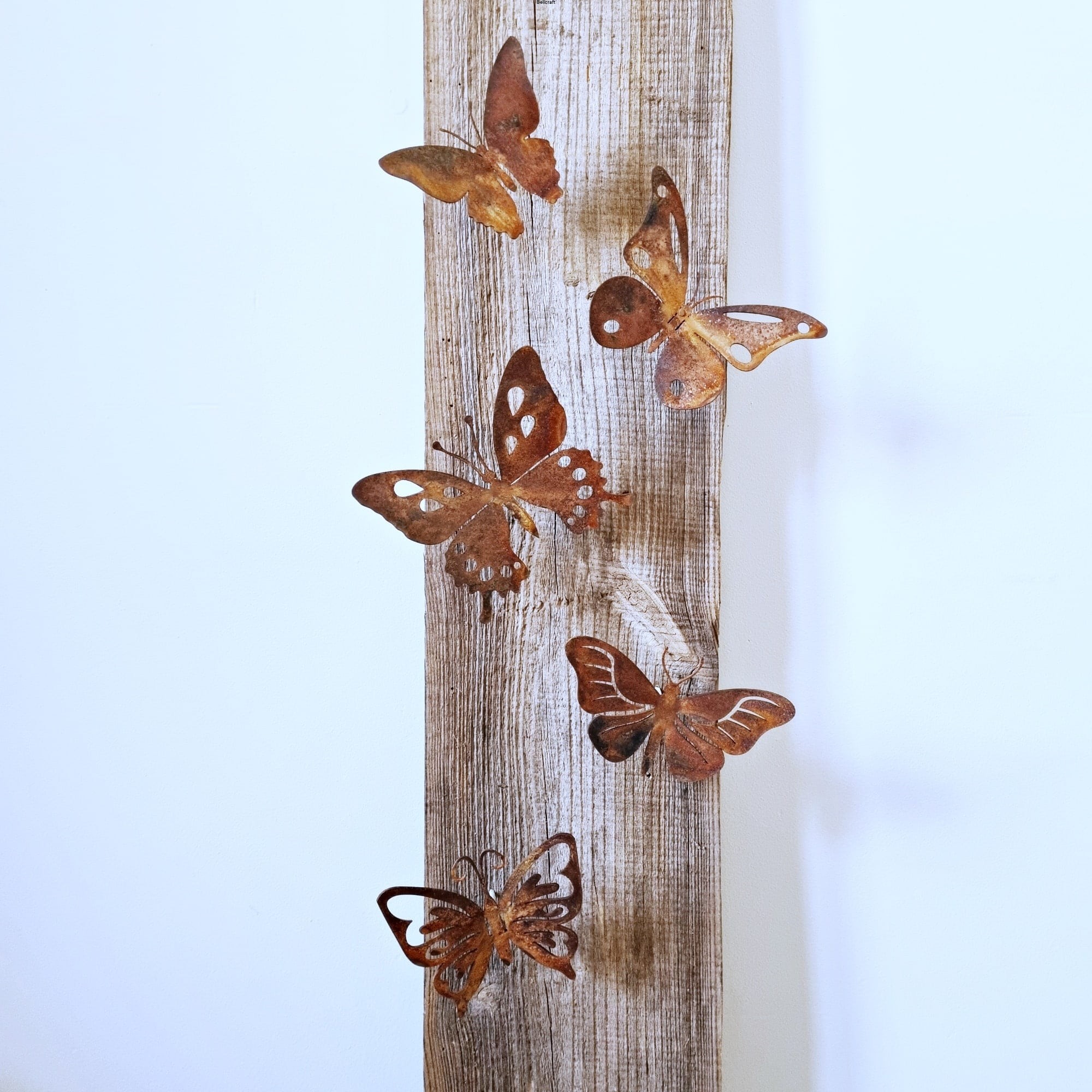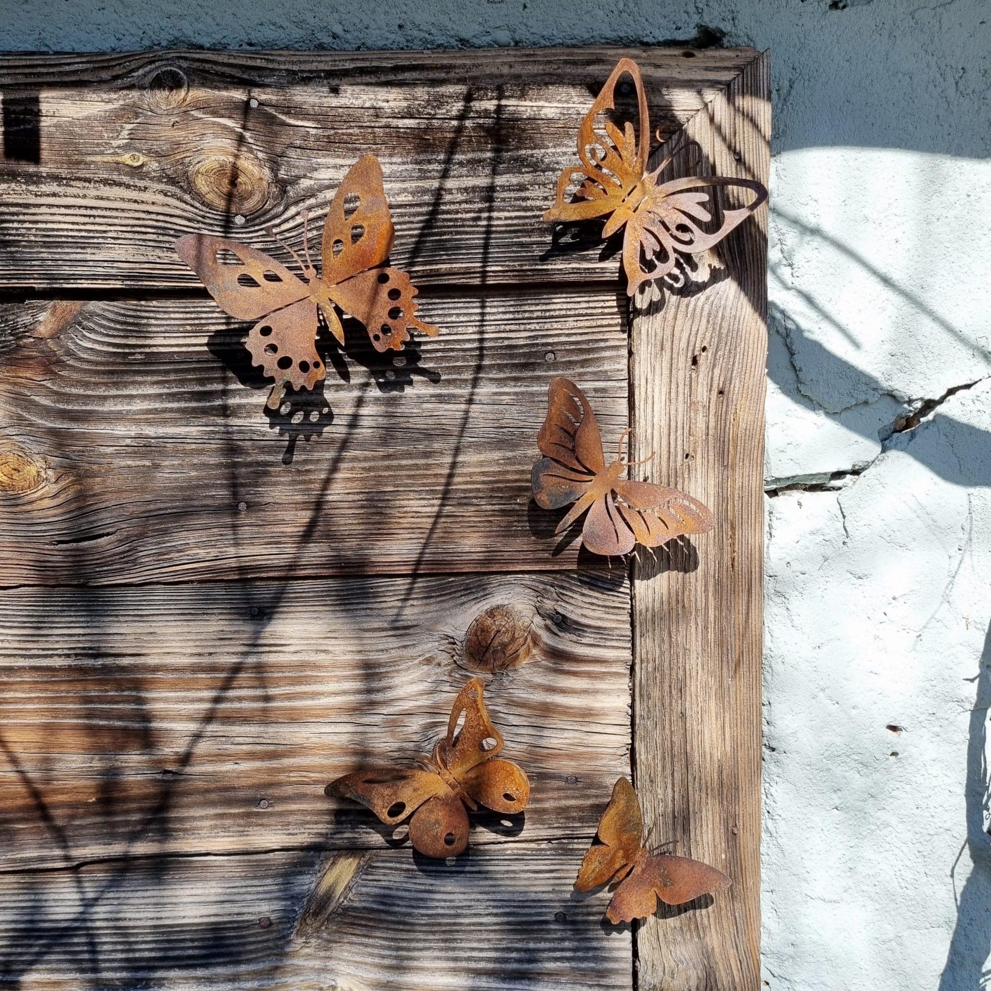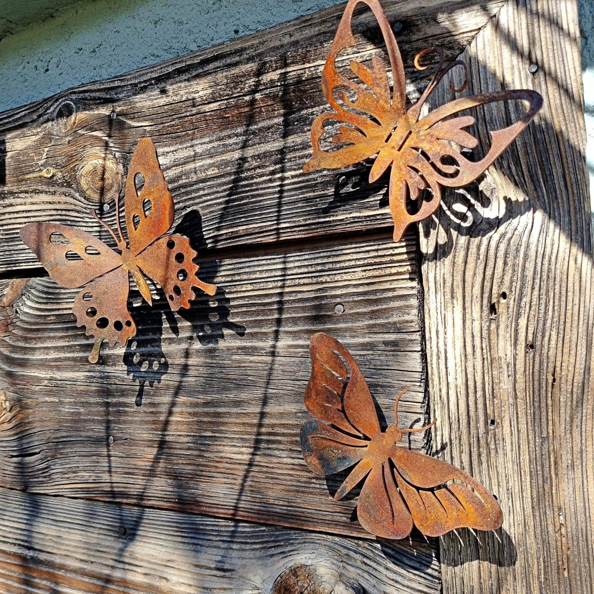 Zestaw 5 metalowych motyli to wyjątkowa i delikatna dekoracja, która ożywi ogrodową czy tarasową przestrzeń. Każdy motyl jest inny, a ich lekko podgięte skrzydła nadają im przestrzenny, dynamiczny wygląd. Dzięki specjalnemu systemowi montażu – nakrętkom i dwustronnym wkrętom – motyle można z łatwością przymocować do drewna, np. altany, pergoli czy płotu. W zestawie znajdują się także kołki, umożliwiające montaż w murze, elewacji lub innej powierzchni. Możliwość pozostawienia przestrzeni między ścianą a ozdobą, nie tylko podkreśla efekt 3D, ale także zapobiega bezpośredniemu kontaktowi ściany z rdzawą powierzchnią.