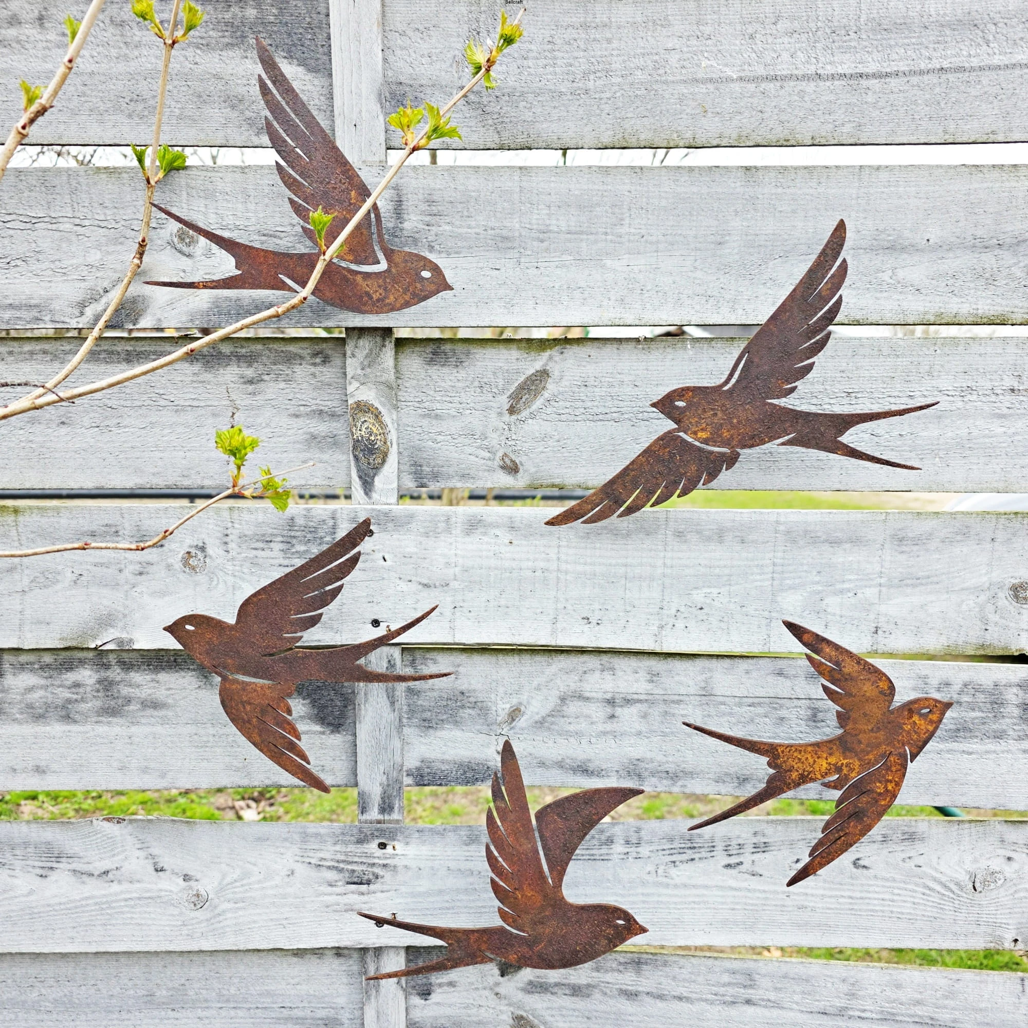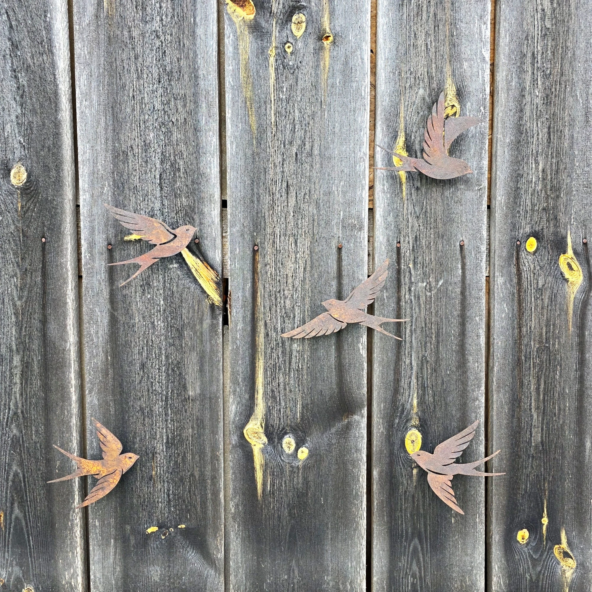Zestaw 5 metalowych jaskółek to wyjątkowa i urocza dekoracja, która ożywi ogrodową czy tarasową przestrzeń. Każdy ptaszek jest nieco inny, ale wszystkie mają pozycję w locie, dzięki czemu można z nich stworzyć świetną dynamiczną kompozycję. Dzięki specjalnemu systemowi montażu – nakrętkom i dwustronnym wkrętom – jaskółki można z łatwością przymocować do drewna, np. altany, pergoli czy płotu. W zestawie znajdują się także kołki, umożliwiające montaż w murze, elewacji lub innej powierzchni. Możliwość pozostawienia przestrzeni między ścianą a ozdobą, nie tylko podkreśla efekt 3D, ale także zapobiega bezpośredniemu kontaktowi ściany z rdzawą powierzchnią.