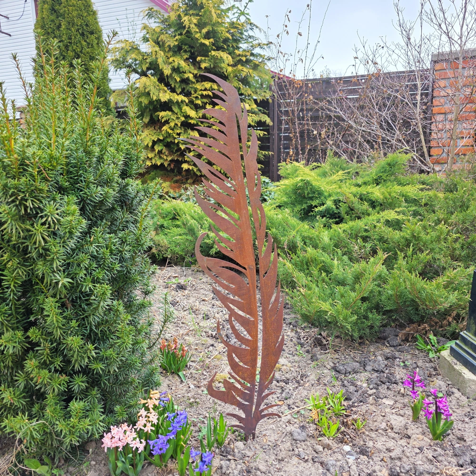 Pióro z metalu malowanego rdzą - ozdoba ogrodowa