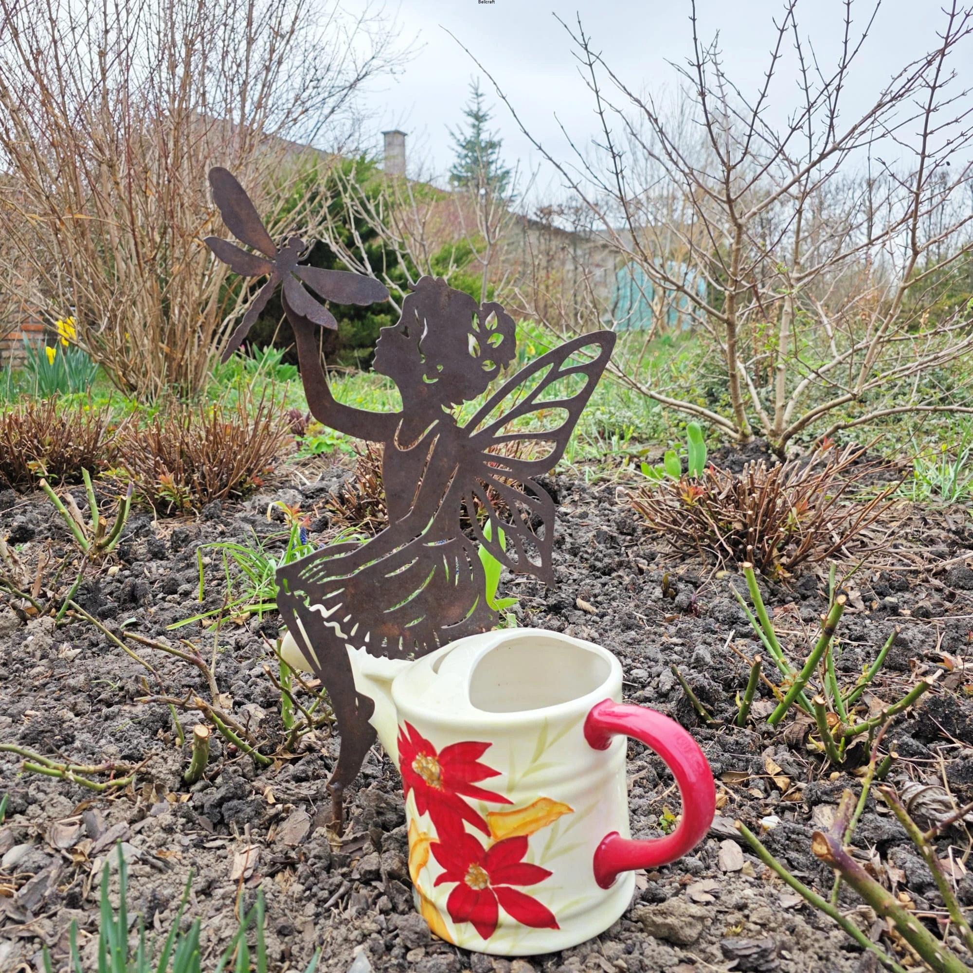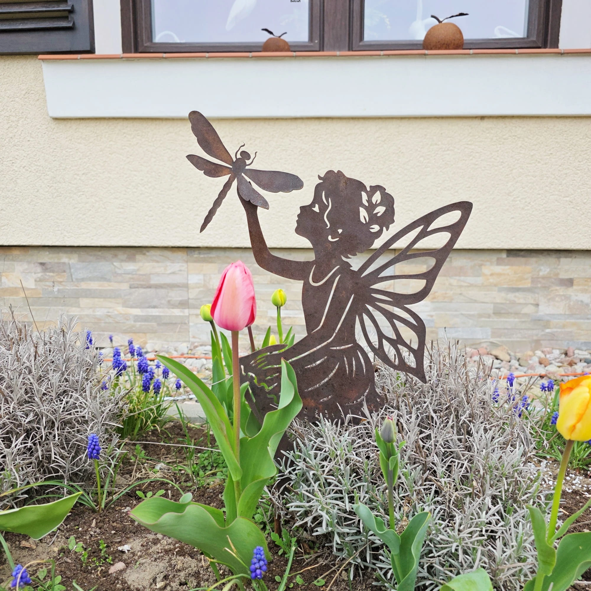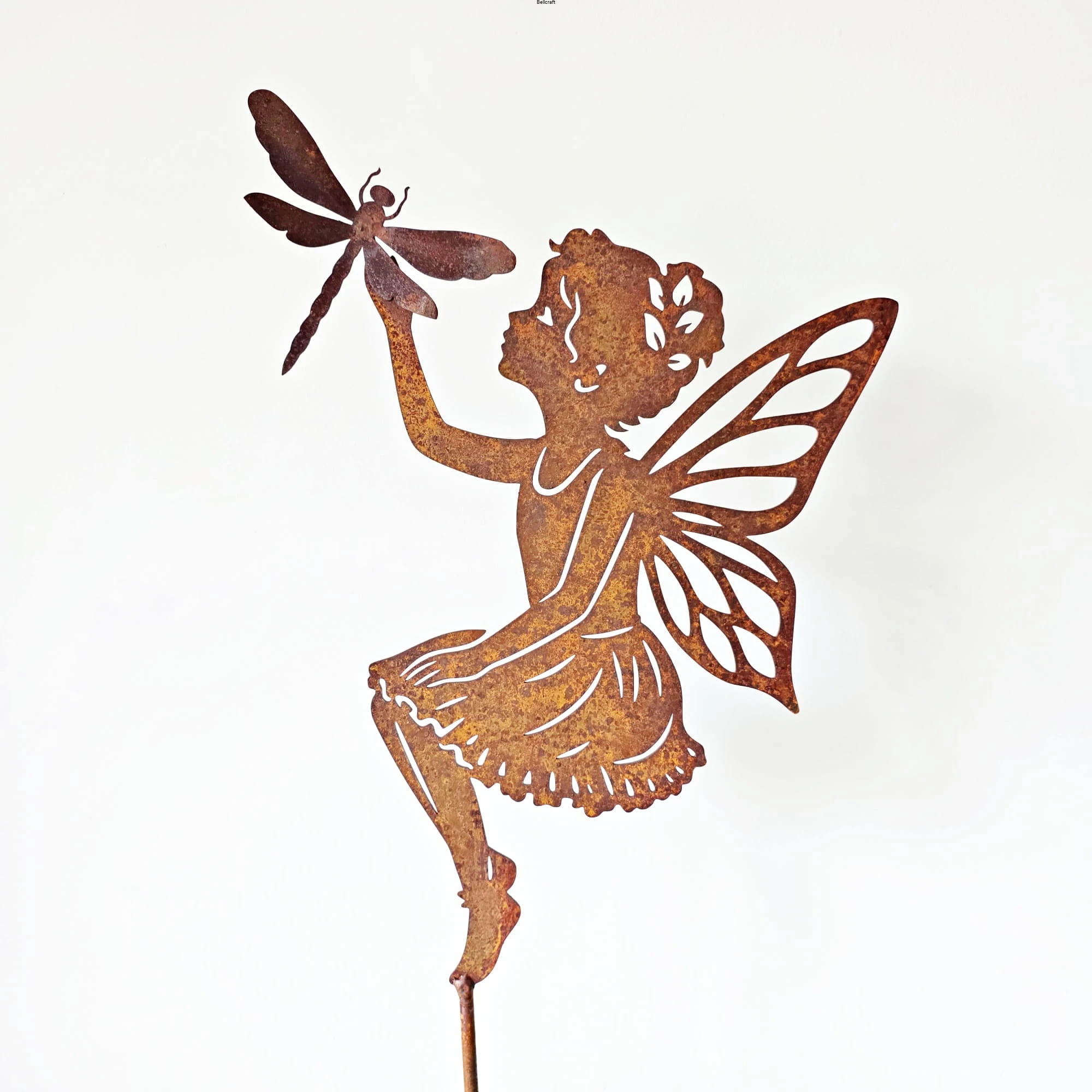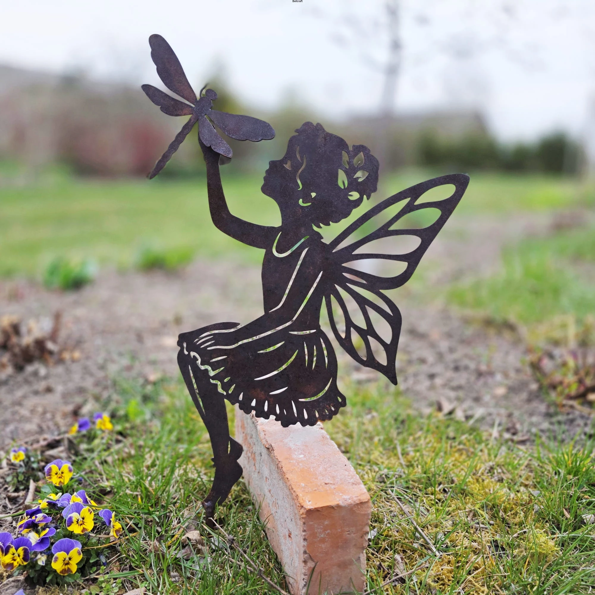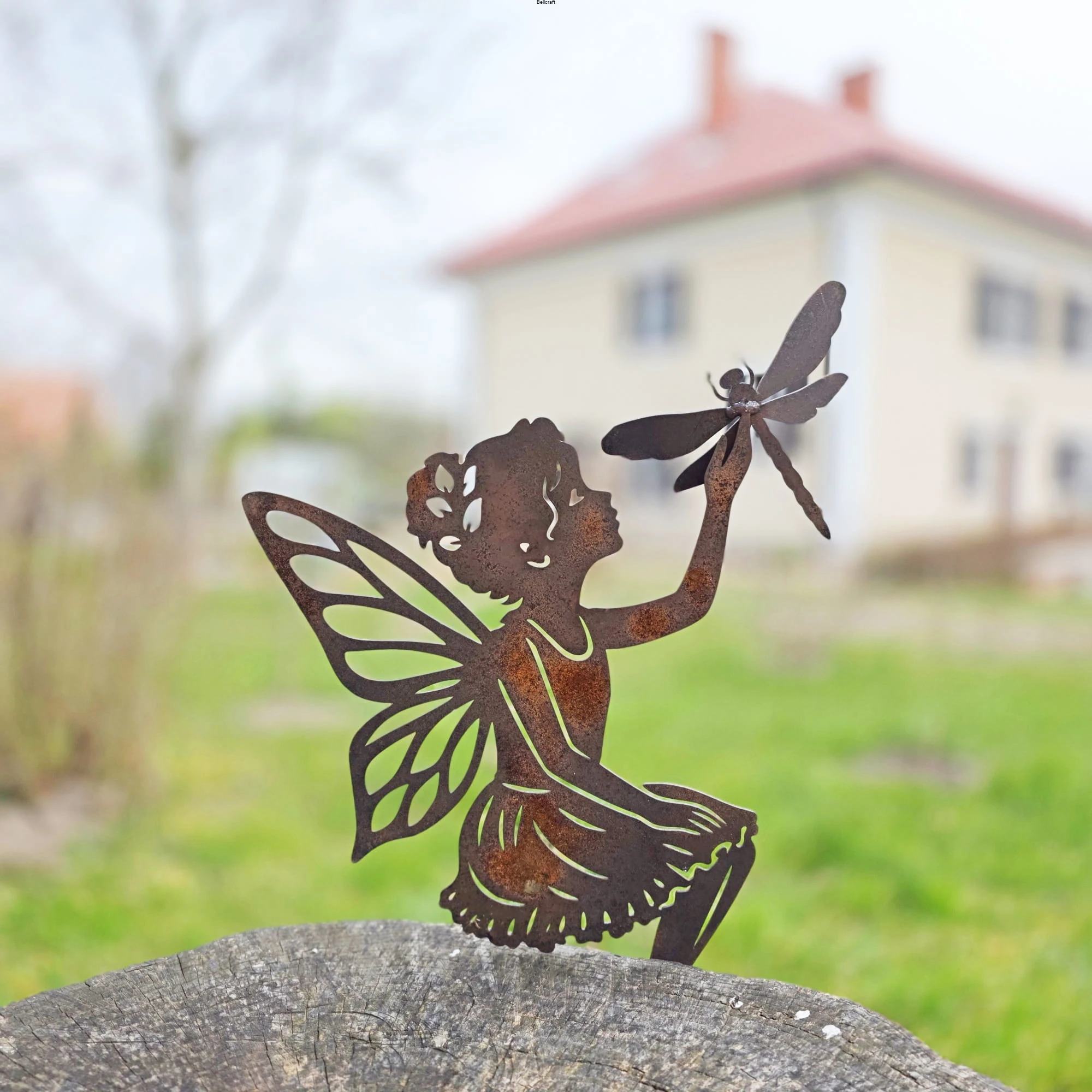 Wróżka ogrodowa z ważką - ozdoba z metalu