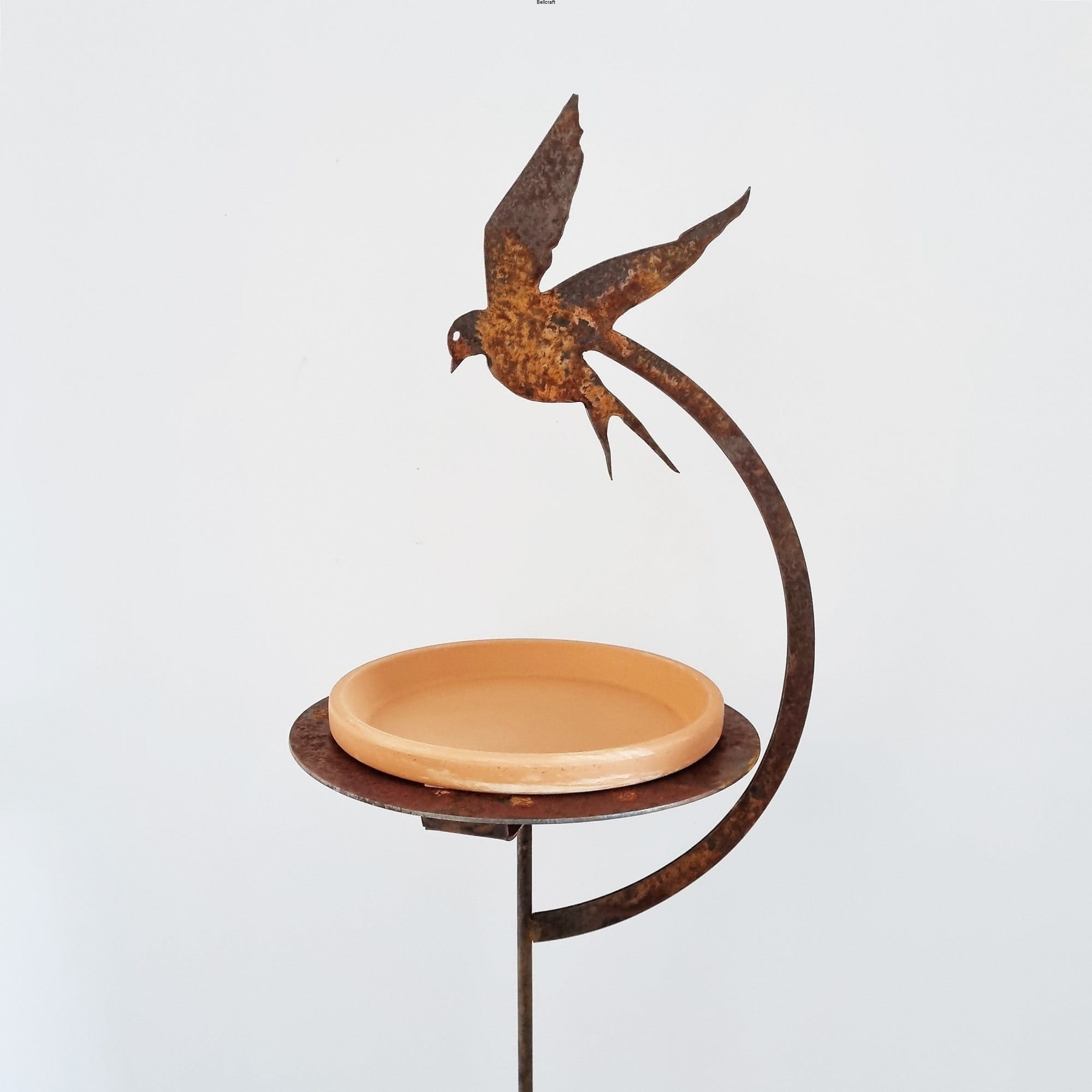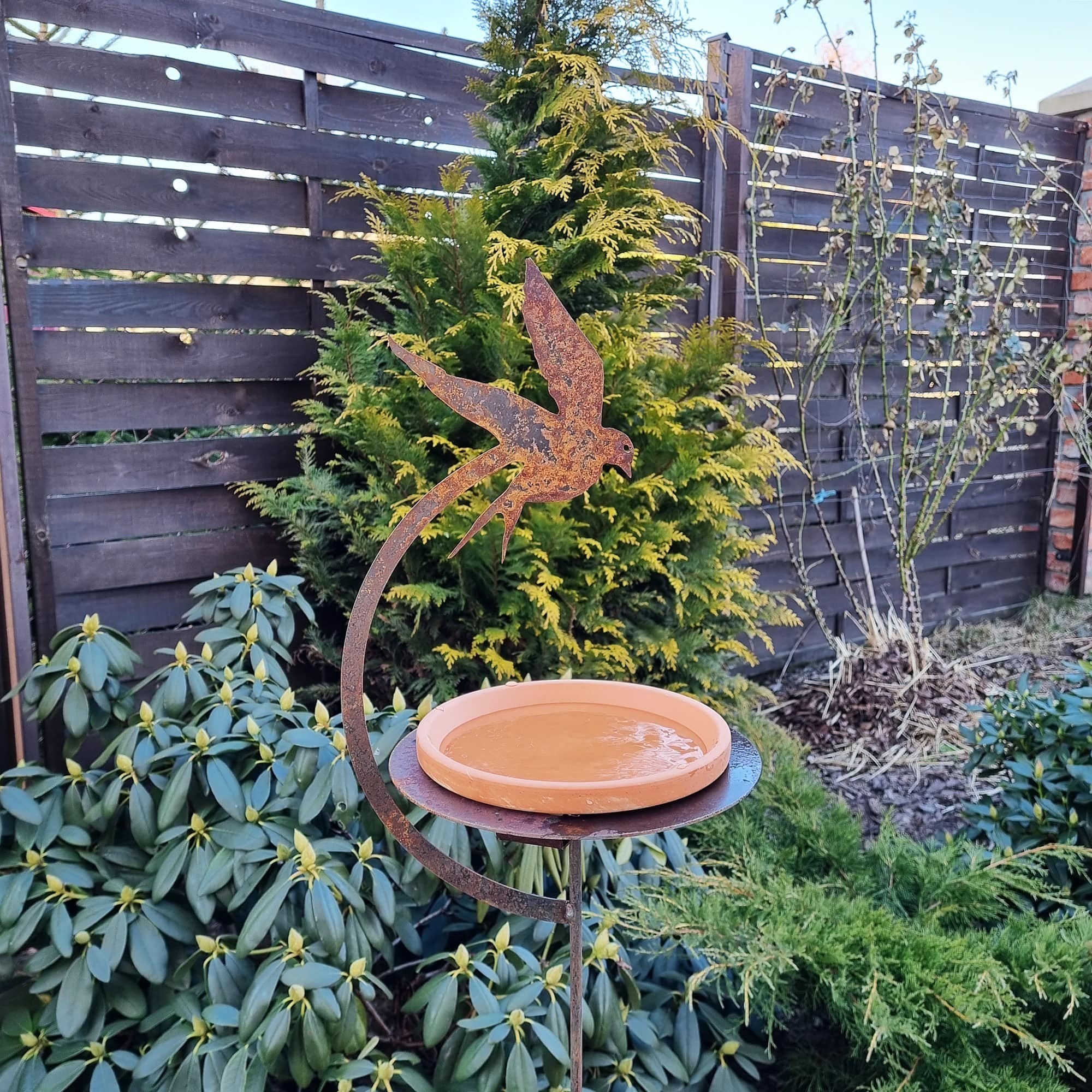 Piękne metalowe poidełko dla ptaków z wzorem jaskółki. Idealne do udekorowania każdego miejsca w ogrodzie, gdzie nie boją się przylatywać ptaki. Romantyczna dekoracja dla każdego miłośnika ptaków.