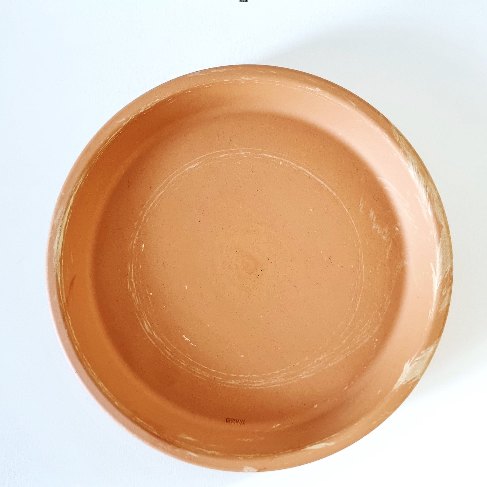 Naczynie na wodę to podstawka z naturalnej ceramiki o średnicy 20 cm i wysokości prawie 3 cm. Mieści w sobie ok. 500 ml wody. Jej profilowany kształt sprawia, że idealnie wpasowuje się w metalową obręcz.